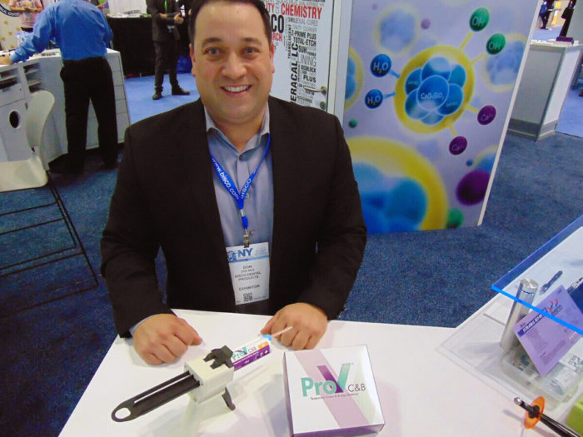 Don Rice of Bisco says the new Pro-V C&B temporary crown and bridge material is strong and durable and offers excellent esthetics. (Photo: Fred Michmershuizen/Dental Tribune America)