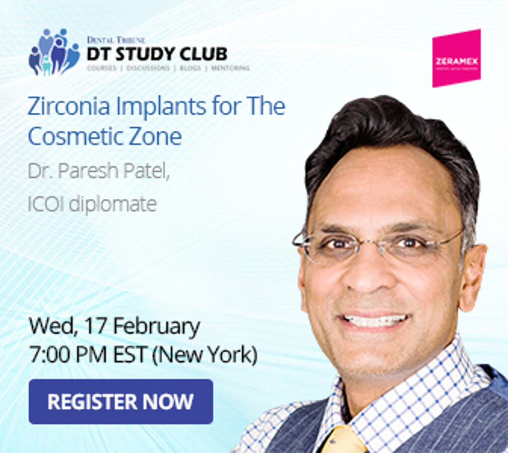 Dr. Paresh Patel will lead a live webinar, ‘Zirconia Implants for the Cosmetic Zone,’ on Wednesday, Feb. 17, at 7 p.m. EST (New York). (Photo: Dental Tribune Study Club)