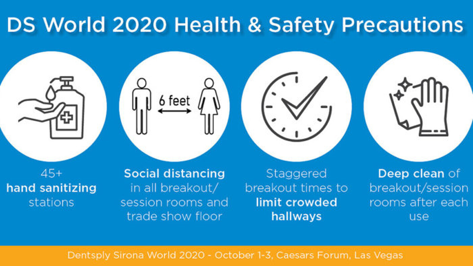 Dentsply Sirona is also following all protocols put in place by the city of Las Vegas, Clark County and the state of Nevada to ensure attendee safety.