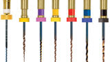 Fig. 4: Orifice-directed access in a molar utilizing Endoguide burs to conserve tooth structure while giving straight line access into the canals.