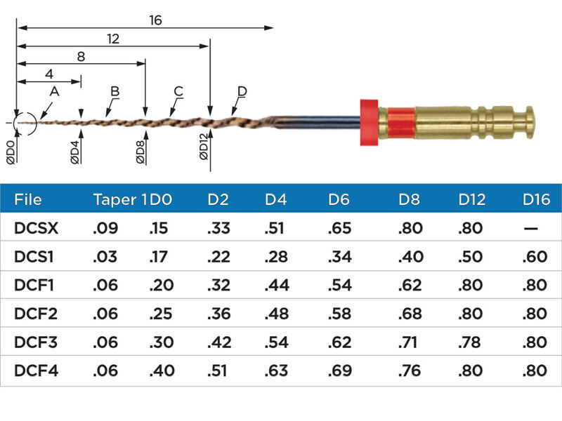Fig. 7: Taper comparison of a size 25 file with a 08 taper between the ExactTaperH DC file and competitive files (WaveOne, ProTaper Gold and ProTaper Next) with relation to how much root structure would be removed in a coronal direction from the apex.