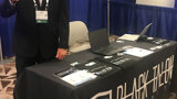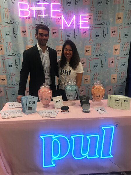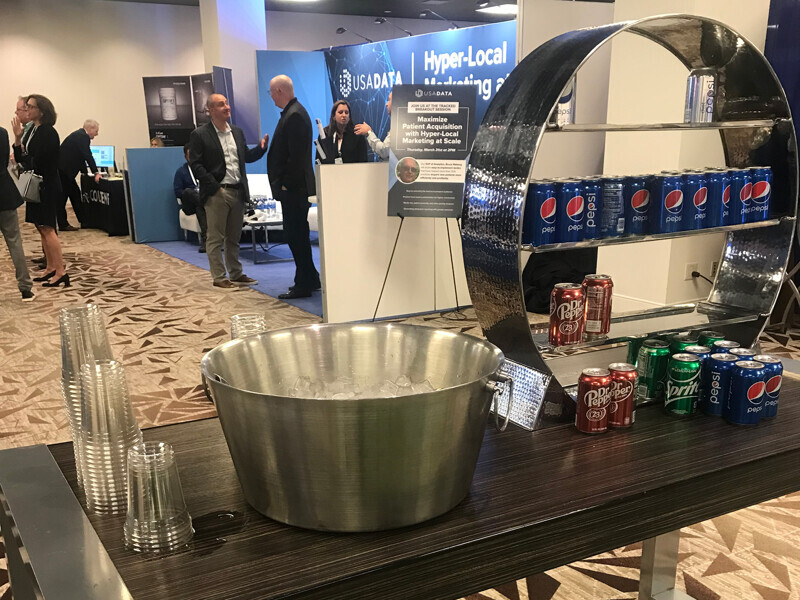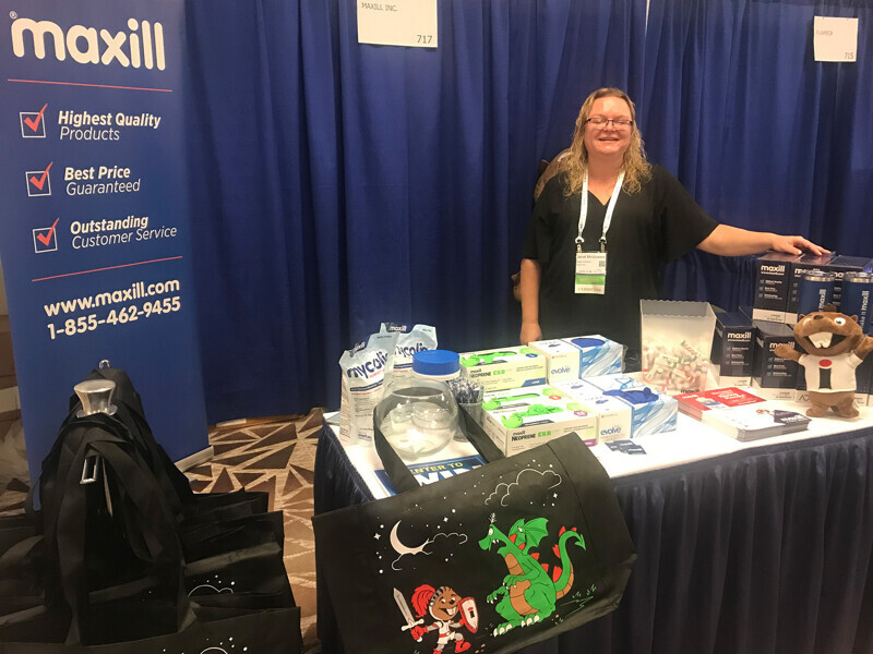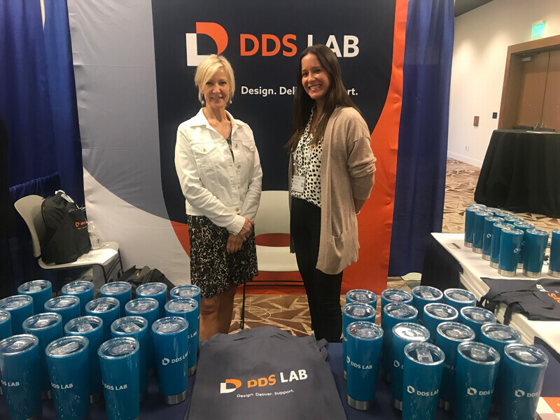 The reps at DDS Labs offer free pens and water bottles.