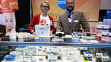 Need to update your loupes and headwear? Stop by the Designs for Vision booth, and get some help from Joanna Sterna and Phil Bullock. (Photograph by Nirmala Singh / Dental Tribune America)
