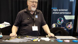 Yannick Gosselin can tell you all about the Additive Reductive Template process for delivering naturally beautiful, ultra-thin Lumineers in the DenMat booth. (Photograph by Nirmala Singh / Dental Tribune America)