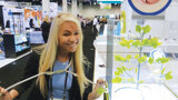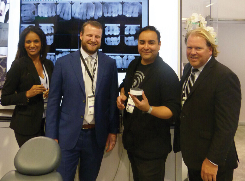 Taylor Maguire of Kulzer shows off the new Ivory ReLeaf, which is designed to assist with evacuation and retraction and maintains a dry field during dental procedures.