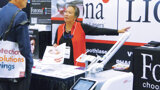 Chris Hebb of Midmark Corp. helps an attendee pick out equipment. (Photo: Sierra Rendon, DTA)