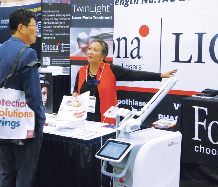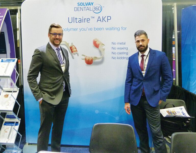Ask Mike Larsson and LJ Bignone of Solvay Dental 360 about the new Ultaire AKP. (Photo: Sierra Rendon, DTA)
