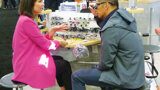 Erin Halvorson of Designs for Vision helps an attendee pick out the best kind of loupes for his individual needs. (Photo: Sierra Rendon, DTA)