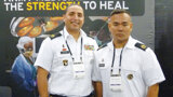 SSG Rivera and SFC Foronda stand at attention, ready to provide attendees the latest information on serving in the U.S. Army medicine team. (Photo: Sierra Rendon, DTA)