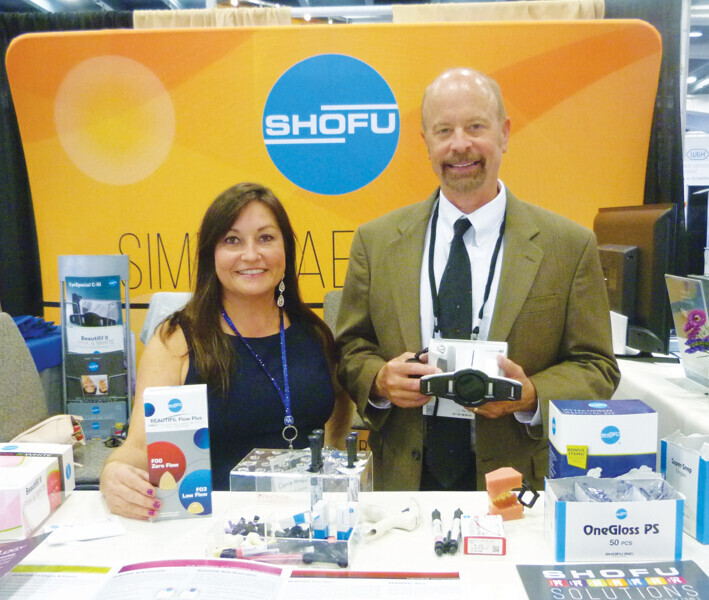 Don Christensen and Carrie Maggard at the Shofu booth. (Photo: Sierra Rendon, DTA)
