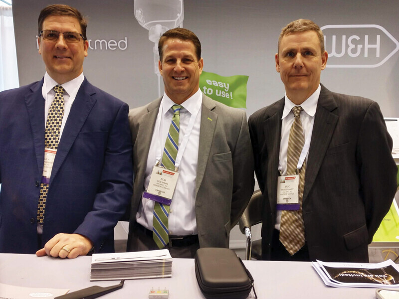 From left: Chuck Harper, Rob Armin and Brad Schmidt are ready to meet you at the W&H booth and tell you about their newest product, the Osstell Beacon, used to design to assess dental implant stability.