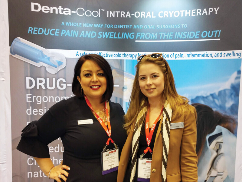 Michelle Rodriguez, left, and Yana Viardo want to tell you all about the first intraoral cryotherapy device at the Denta-Cool booth.