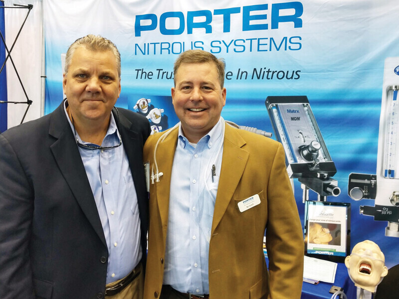 John Gustafson, left, and Bo Sutch can tell you all about the Silhouette low-profile nasal mask at the Porter Instrument booth.