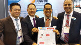 From left: Kazu Tanji, Kevin Kim, David Fong and Carlos Ortega at the DoWell Dental Products booth.