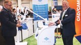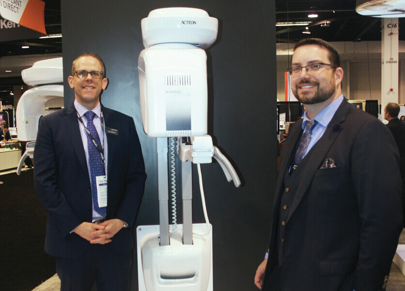 Acteon’s Chip Vagnoni and Tom Davis show off the new X-Mind Prime, which combines 2-D and 3-D technologies. With 24 panoramic and 32 CBCT options, X-Mind Prime covers many applications, including implants, endodontics, TMJ and sinus imaging.