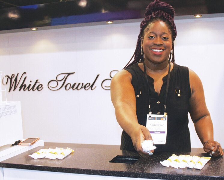 Based on the Japanese tradition of ‘oshibori,’ White Towel Services manufactures and distributes luxurious 100 percent cotton, lightly scented, pre-moistened towels. Get one yourself from Rosza Brown.
