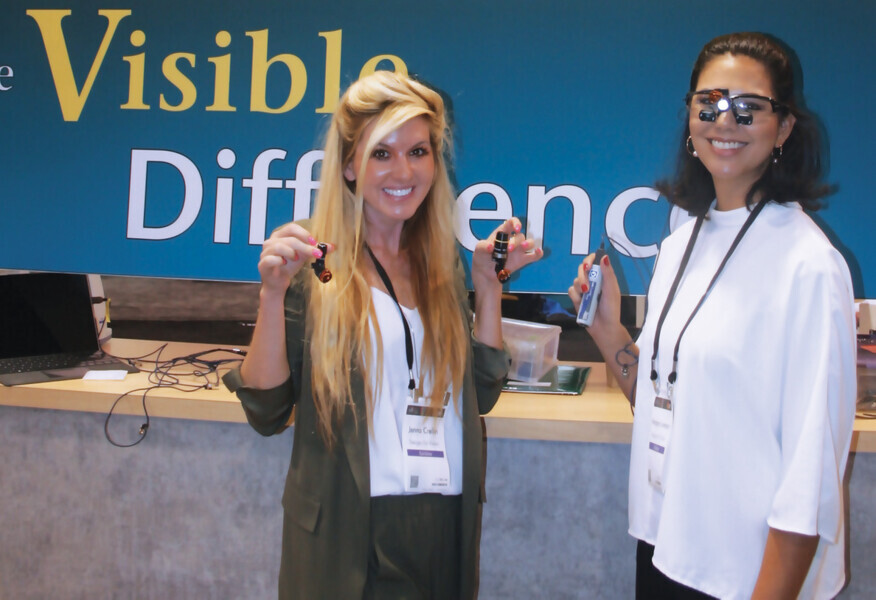 Jenna Crellin and Meagan Lorenzo of Designs for Vision display some of the company’s newest products.