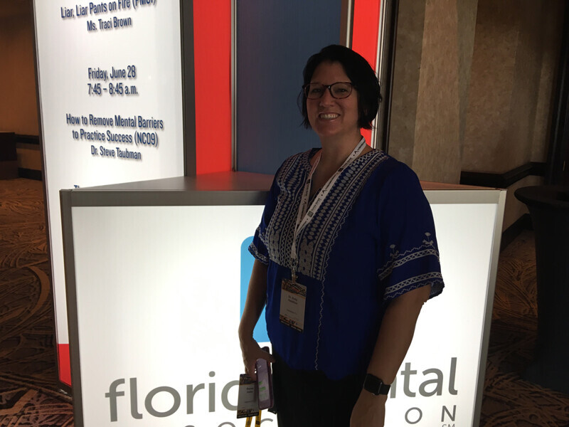 Dr. Holly Hamilton of Sebastian, Fla., outside the opening session Thursday morning during the FDC.