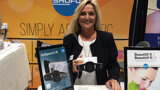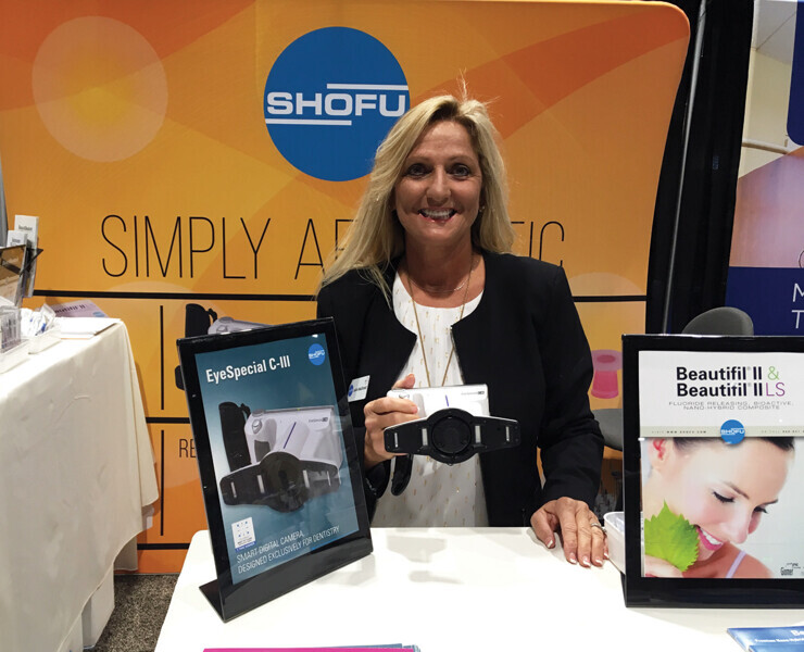 LeAnn MacDonald shows off the EyeSpecial C-III, a digital camera made specifically for dentists, at the Shofu booth.