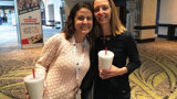 Dr. Rita Hurst of Seminole, Fla, left, and Becky Chesler of St. Petersburg, Fla., stop for a moment before heading in to enjoy the opening session on Thursday morning.