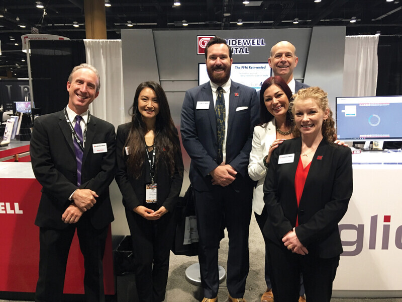 From left: Andy Klein, Annie Lee, Richard Shaw, Rob Brenneise, Monica Silva and Jenny Gardner are all smiles at the Glidewell booth.