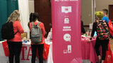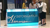 Everyone is wearing a mask when stopping for directions at the information booth.