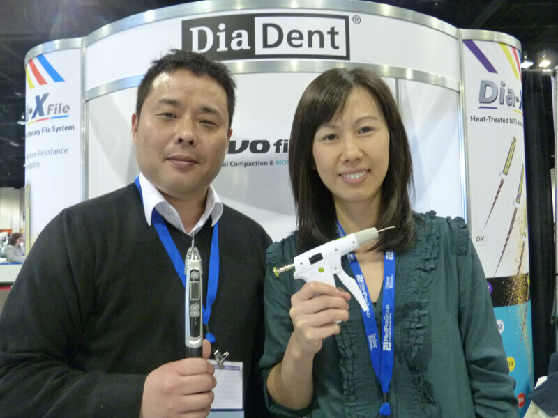Steve Kim (holding an EvoFill) and Katie Liu (with a Duo-Gun) in the DiaDent booth.