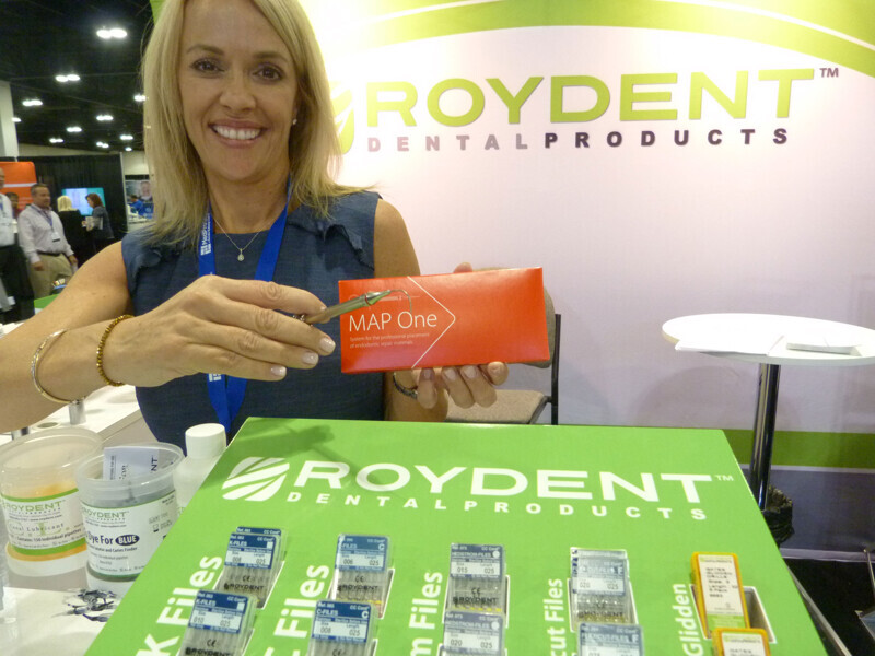 Tanya Beck in the Roydant Dental Products booth with the MAP One intro kit.