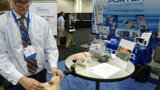 Mike Walsh displays the Porter Silhouette low-profile nasal mask in the Porter Instrument booth.