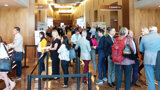 AAID attendees eagerly line up at the registration booth Thursday morning.