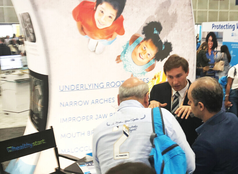 Joe Belbie of Healthy Start talks to attendees about Ortho-Tain, an appliance used to treat sleep-related breathing disorder symptoms.