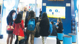 AAO attendees get ready to enter the Los Angeles Convention Center for the AAO meeting.