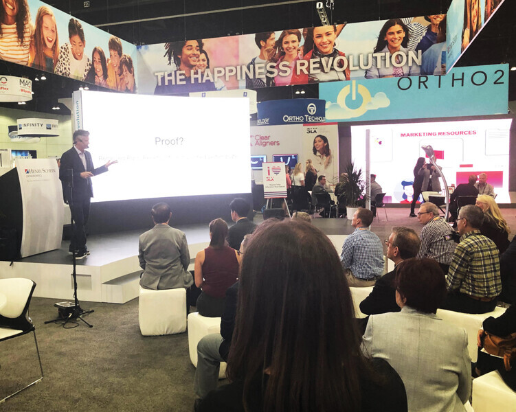 Dr. John Graham speaks on ‘SLX 3D: Self-Ligation Perfected’ at the Henry Schein Orthodontics booth.