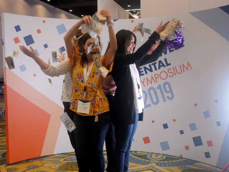 A slow motion photo booth were fake money was thrown away as a way to simbolize savings from using Glidewell products. (Photo: José Antonio Rosario for Dental Tribune)