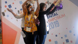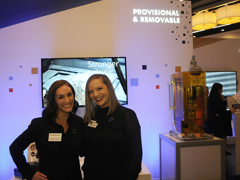 Katrina van Duyn and Christina Mahi showed Glidewell’s provisional and removable dentures. (Photo: José Antonio Rosario for Dental Tribune)